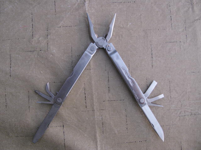Used Leatherman "Original PST-TOOL" Stainless Steel Multi-Function Tool w/sheath. Shows very light pocket wear and minimal use. Made in Portland Oregon, USA.