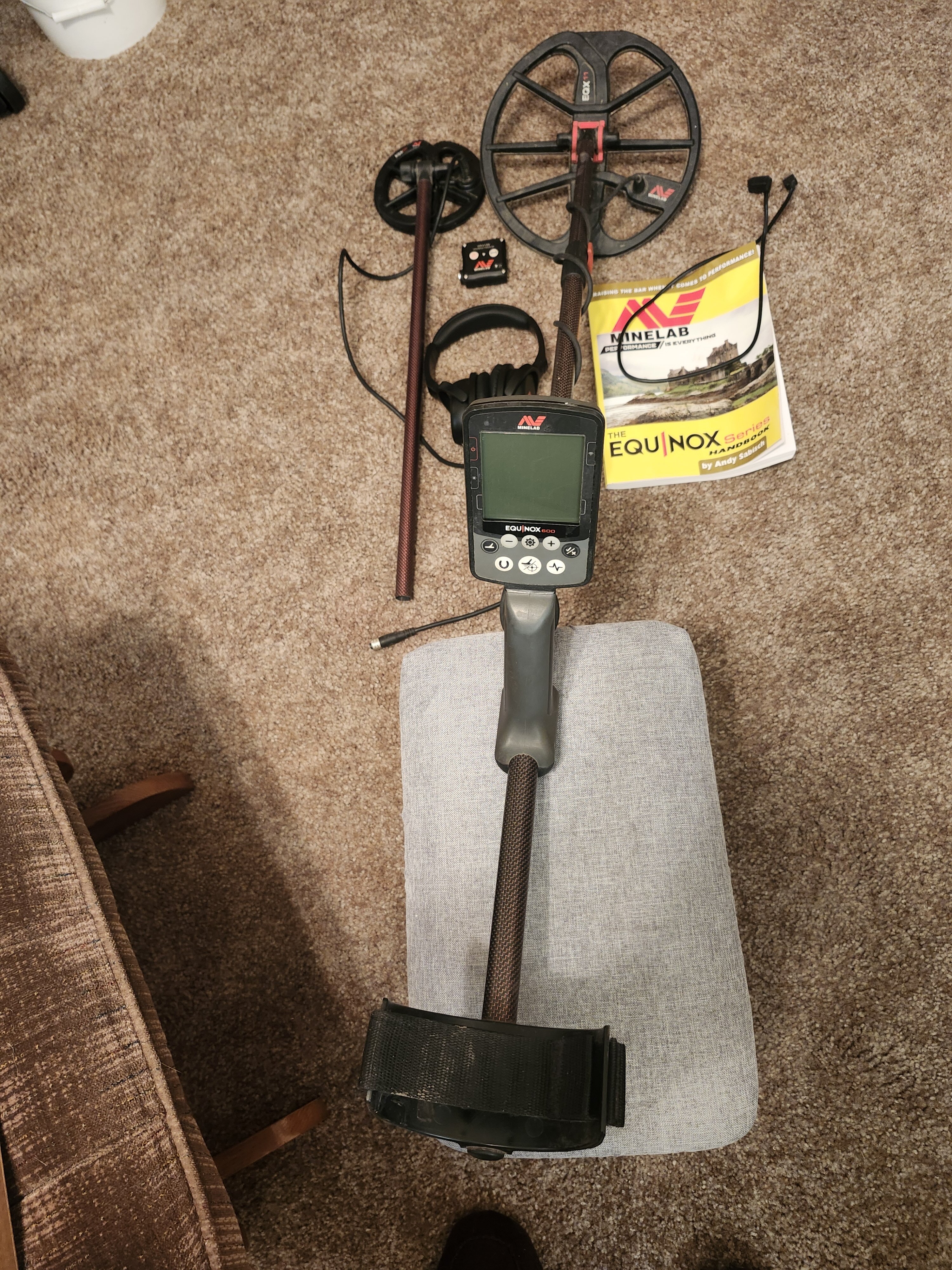 Selling my Equinox 600. Have had for several years and it has been a great machine. Comes with stock coil and the 6". Machine has after market carbon fiber shaft. Also, extra lower shaft (carbon fiber) to house the 6" coil. Makes for easy switch. Small coil used for may be 20 hours total. Everything in the pic included: Nox book. Charging cable. Wireless module (WM0