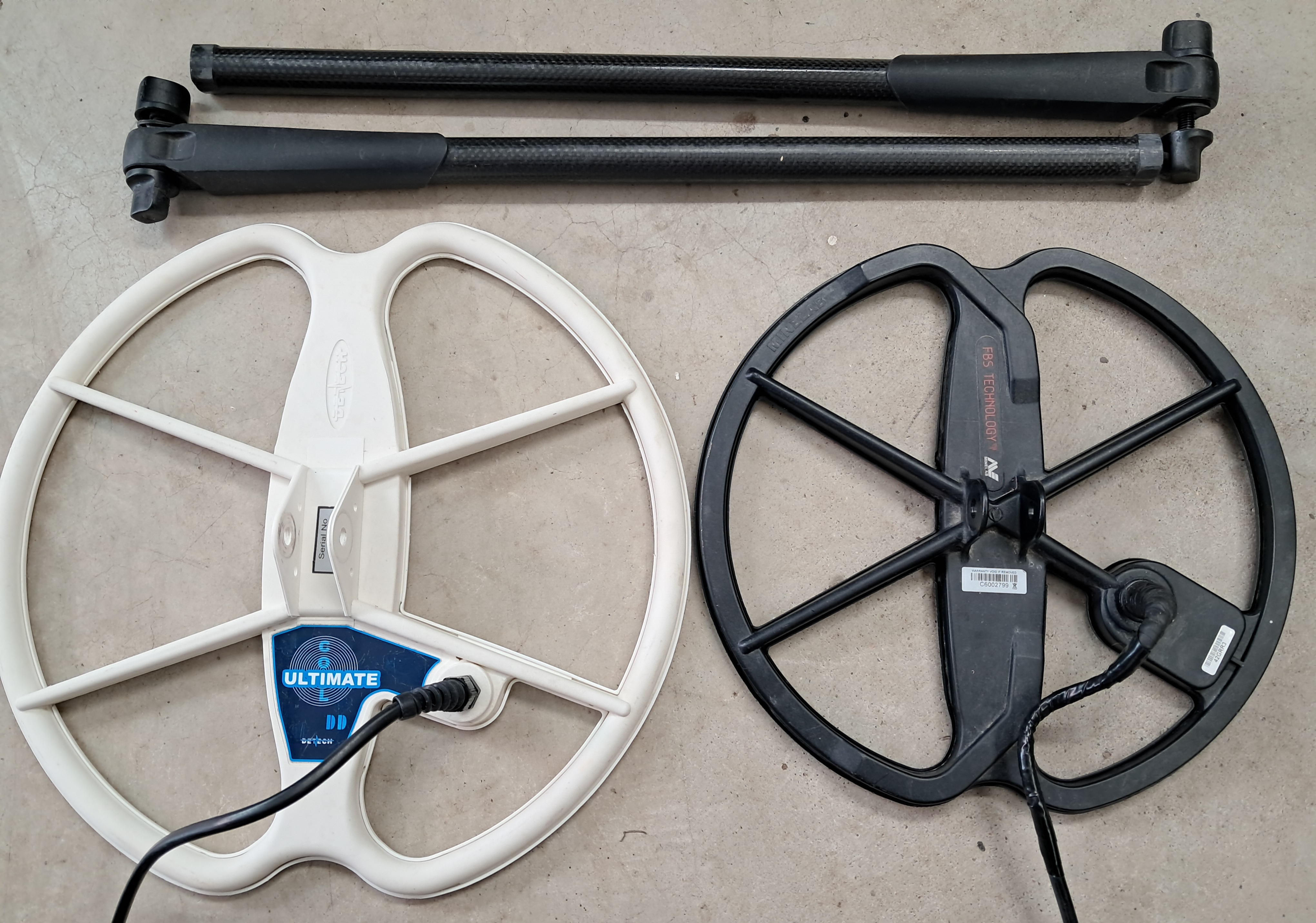 I have a couple of coils that will fit the Minelab Explorers, Etrac or Safari. One is the 11" Pro coil w/cover. The cable sheathing deteriorating pretty bad. Although Although it's ugly, it works like it should. Other one is a Detech 13" Ultimate w/ cover. There are two carbon fiber lower rods included with connecting hardware. Asking $165 shipped. Please feel free to contact me if you have any questions. Thanks for looking.
