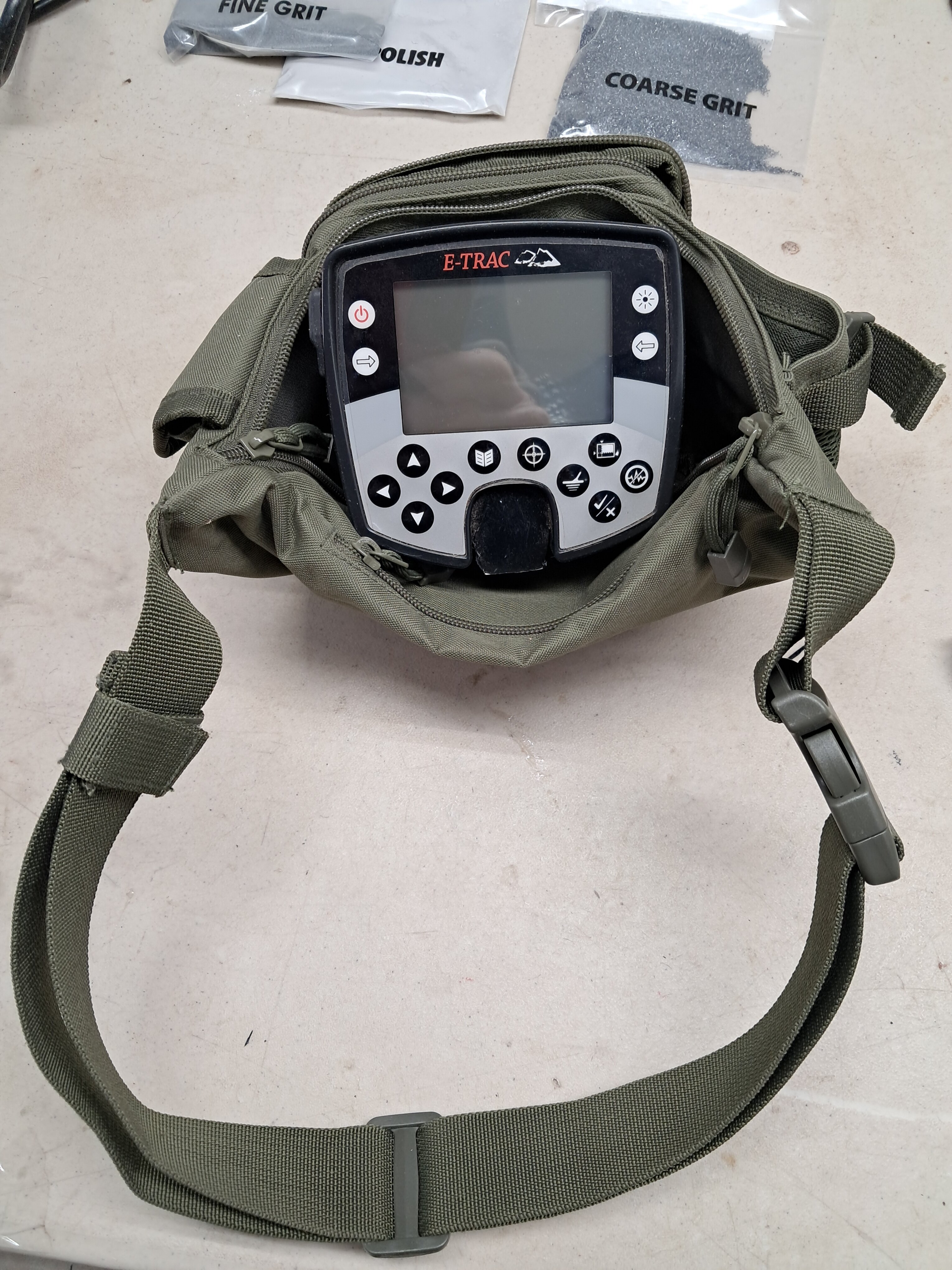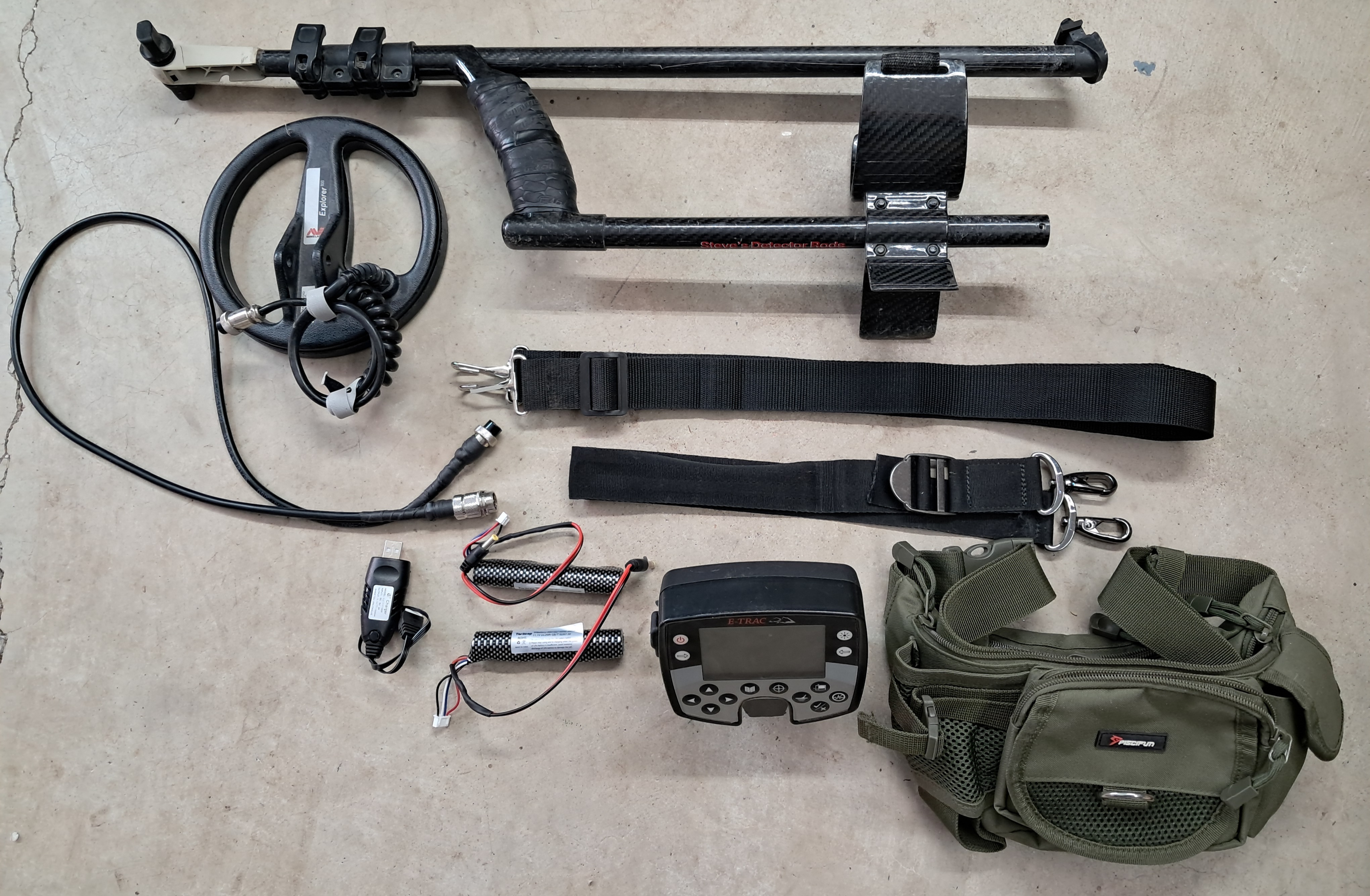 I'm selling my modded Etrac that comes with a Minelab 7.5" coil, Steve's carbon fiber XP Deus shaft assembly, 2 batteries and charger, pouch to carry the Etrac, 2 chest straps. Run time on each battery is 3.5-4 hrs, both will give a good days hunt. I'm looking to get $425 shipped. If you have any questions , please email me at dign4au2@yahoo.com. If you want to text or call me, send me a PM.