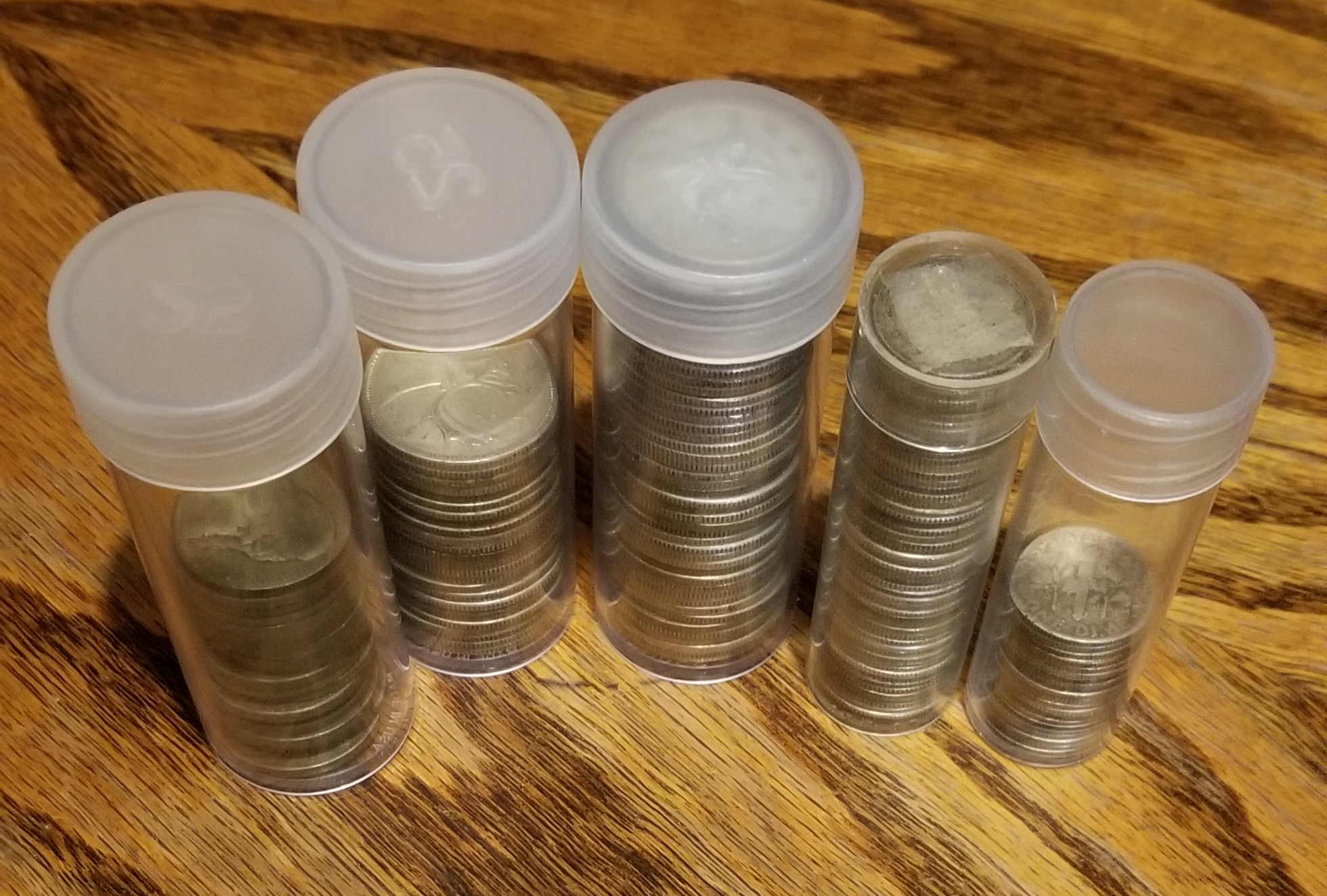 70 silver 80% Canadian quarters. 21 silver 80% dimes and 20 war nickels. Total $362