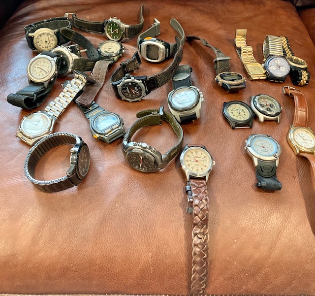 Selling an accumulation of watches that I purchased over the years. Most I wore until the battery ran down, then bought another one. Nothing fancy; mostly Timex. However, I was and am amazed how well they ran. Anyway, there are 23 watches, total (I know the pic only shows 21, but I have two that aren't pictured-I guarantee there will be 23). The majority of these only need a new battery and I believe they will run like new.