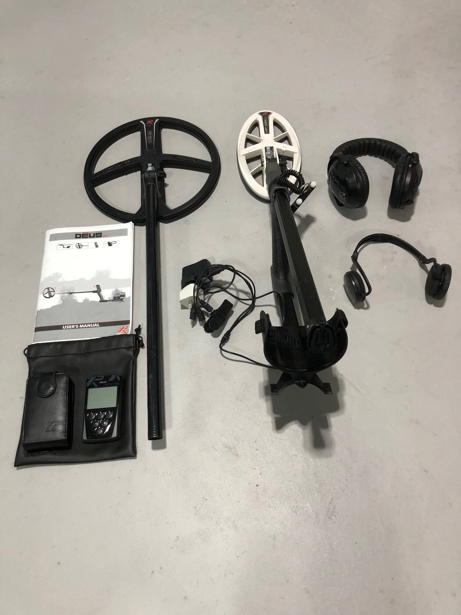This is a good chance to purchase a complete detector package with everything you will need for a good hunting experience. The package contains Xp handheld unit, Ws4 headphones, Ws5 headphones, 11" low freq coil, Elliptical high freq coil, detector shaft, manual, and charger with all connectors. All item are in very good condition except the Ws4 headphones have some scratches on them.