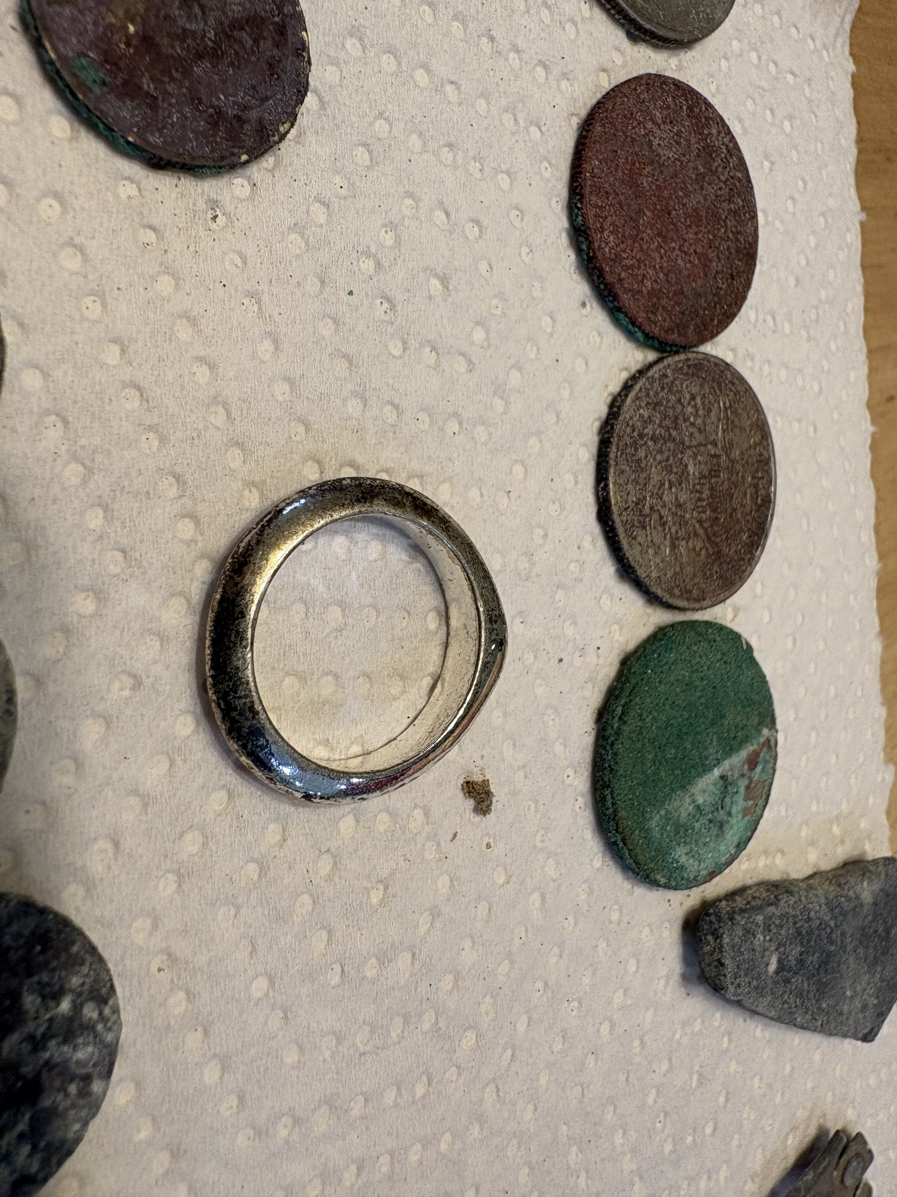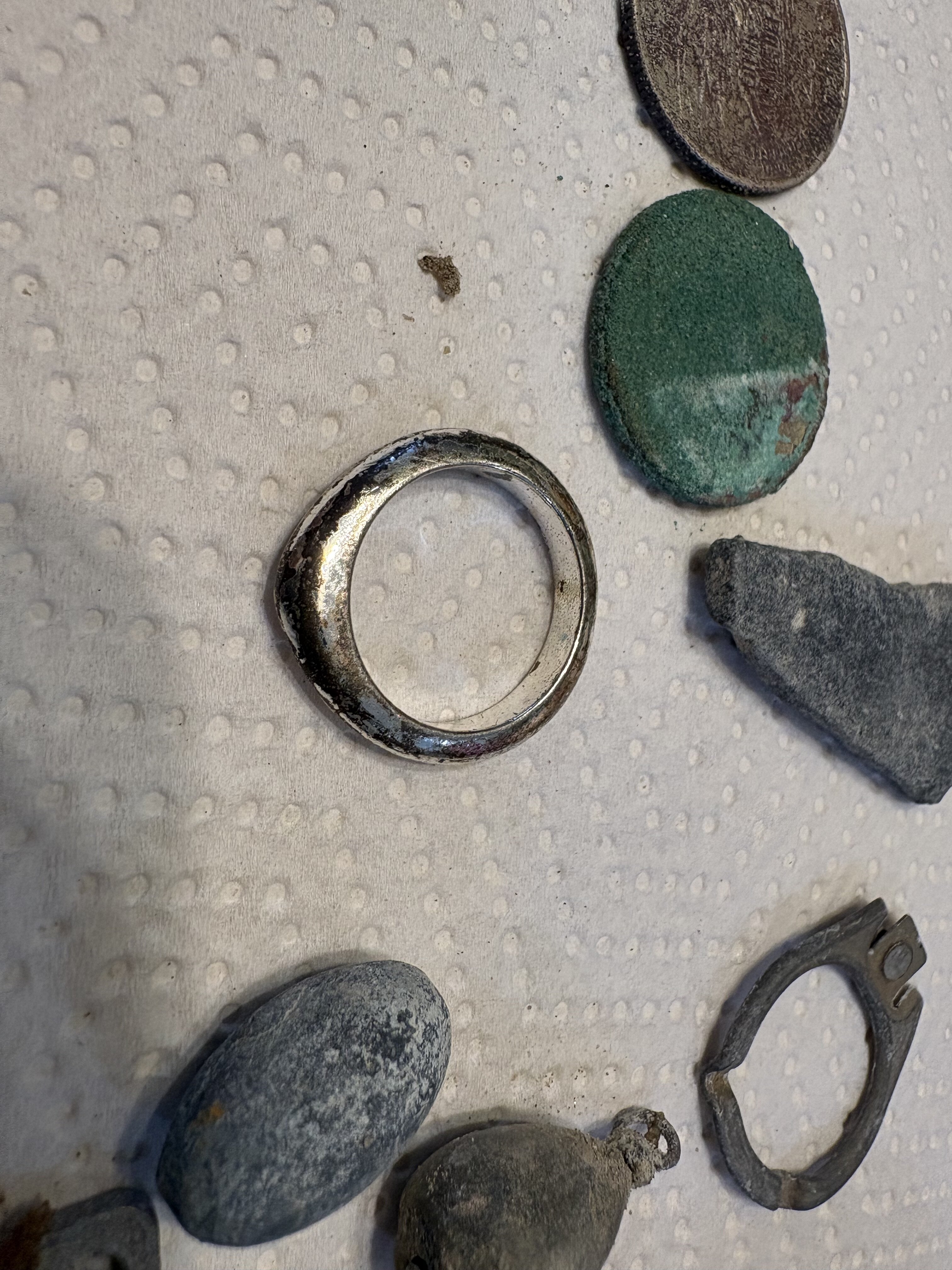 Went to the beach yesterday and found a few items. The beach was sanded in pretty bad, ran beach sensitive , cranked it up to 99 and really slowed down my swing. I was digging coins at about 12-15 inches. All that digging just wore me out, at 73 just could not hang too much longer, headed to the house for a siesta.