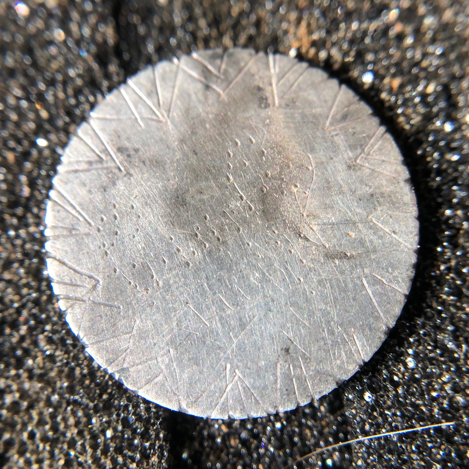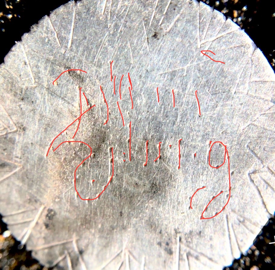 found half dime saturday, someone had started making a lover token on one side, can see writing and dots started a outline, can not make out what it says