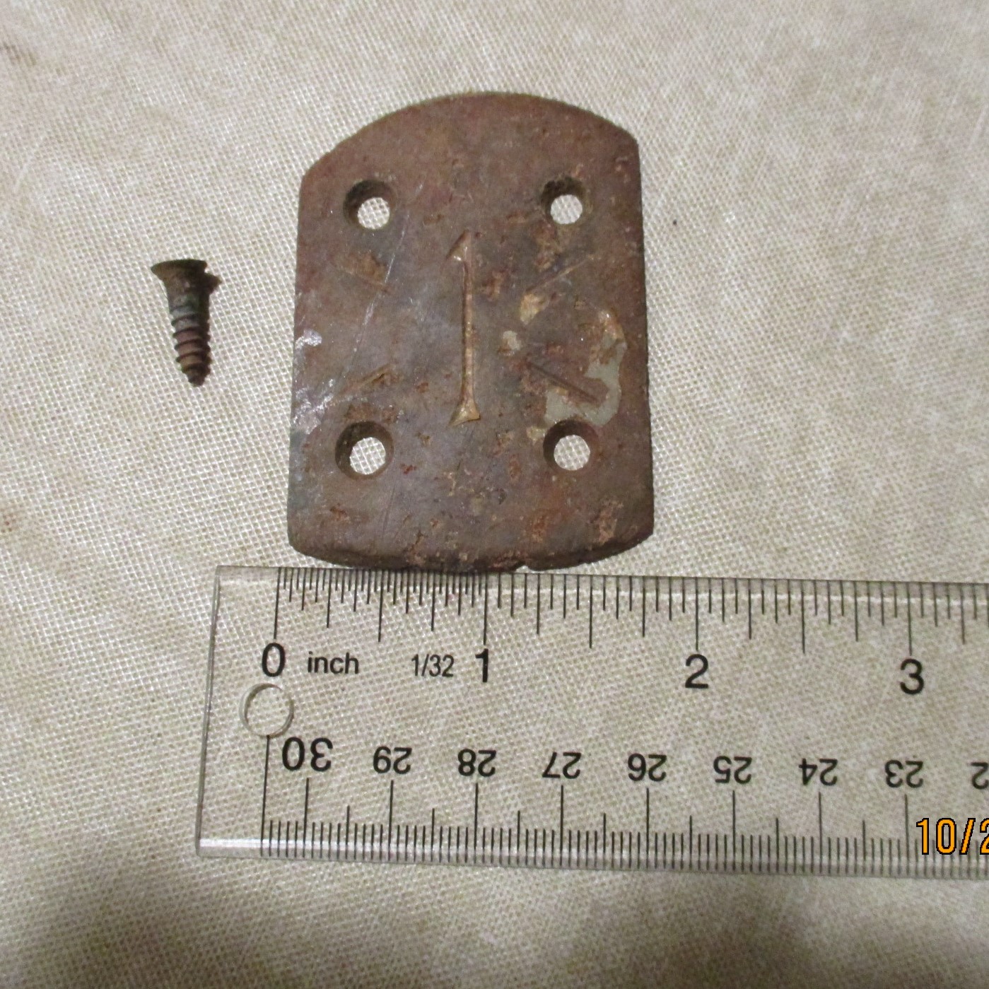 It also had the small brass screw in one of the holes, but it was a Phillips screw which came out in the 1940's, so this could be a more modern version, or the screws may have been added later on.