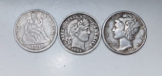 I hunted a small town park the other day. I try to get there 2-3 times a year. This place has been hammerd pretty hard. Parts of main park have absolutely no high tones left. I concentrated on one of the ball feilds and found a dime trifecta, 1890 Seated dime, 1902 Barber and a 45 D merc. Also found a 1912D V nickle and a 1890 Indian. I hunted hard for the silver rosie for the grandslam but couldn't make it happen