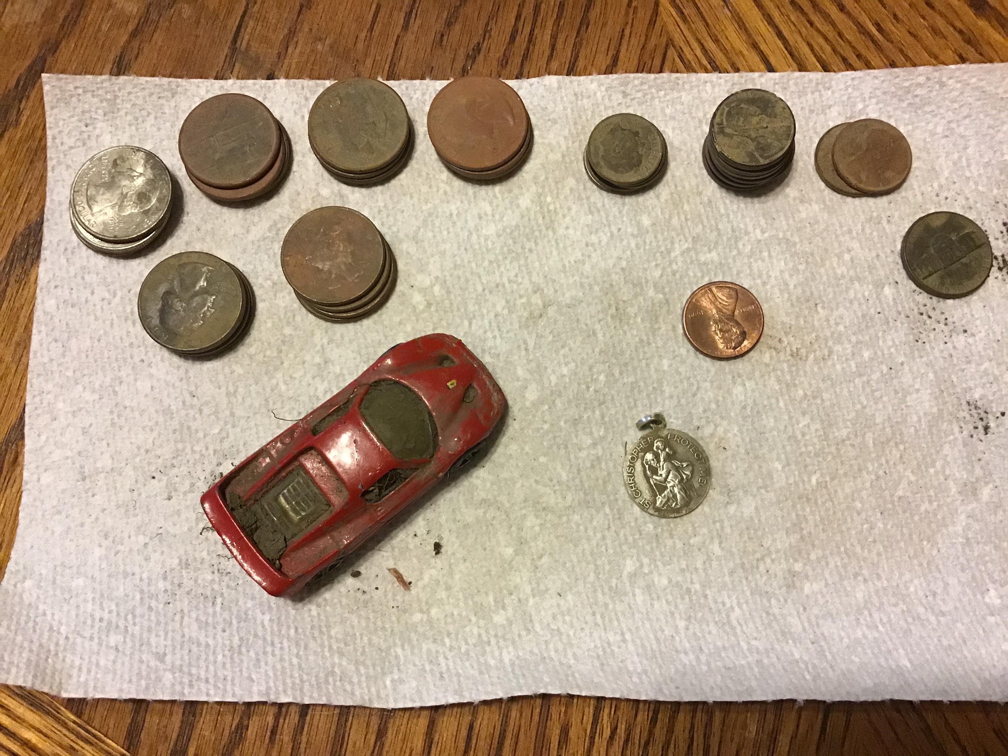 My 4 week silver streak is intact..I went to 4 different parks this morning..Hit the 3rd park and still was only finding clad..was getting ready to leave when a younger guy pulled up to me and asked how I was doing..we got to talking and he said he is a detctorist too..we traded talk about different finds we’ve each made..then he mentioned about having luck finding silver outside the local pool....I’ve hunted that area several times and only found one silver all the times I’ve gone there..so we went our separate ways and decided to give the area near the pool a spin and luckily scored this pendant very close to the metal fence..only other find was a penny at the pool....