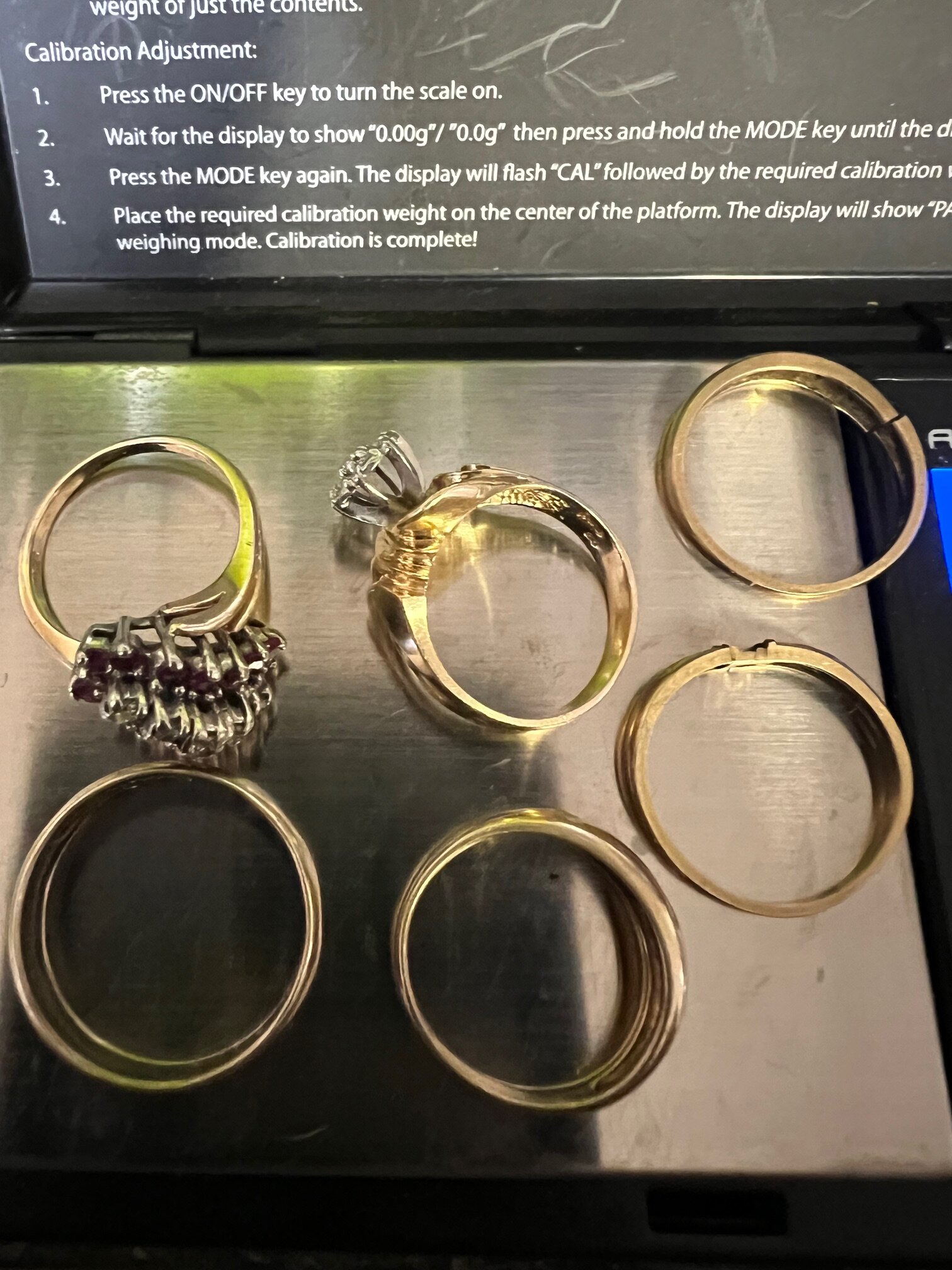 All the rings are 14K, the 2 on the right are broken. Nice diamond and ruby dinner ring is included plus another diamond ring as well ( pictured )